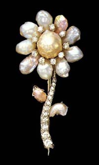 This crysanthemum pin is described as “affordable”. It is made from freshwater pearls from the Cayahoga River in Ohio and diamonds set in platinum.