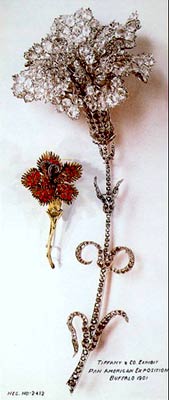 If carnations are your favorite, you may like the larger item here, the “Lawson Pink” carnation brooch, or the smaller red carnation with pink tourmaline, dematoid garnet, and gold.
